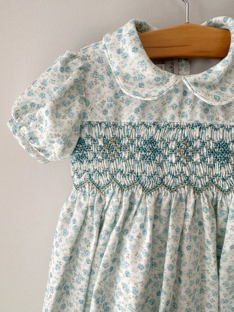 Floral Hand Smocked Romper. Lined. 100% cotton. Made to order in Portugal, expect 4-6 weeks lead time.